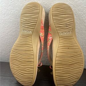 VIONIC Coral Flip Flop Sandals with Bow Accent