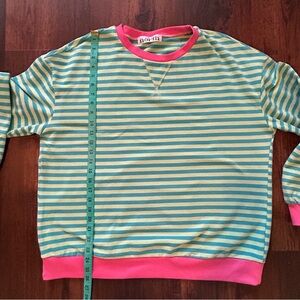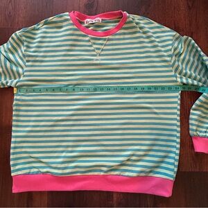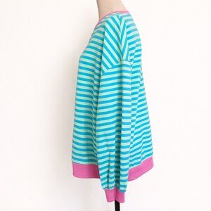 One Eleven North Striped French Terry Sweatshirt M Teal Pink Crewneck