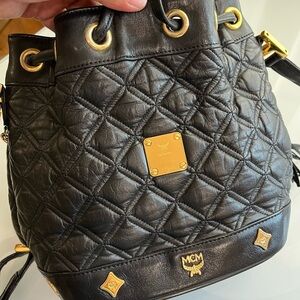 MCM VINTAGE MINI DRAWSTRING BUCKET BLACK LEATHER BAG