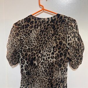 ASTR The Label Leopard Cheetah Print Ruched V-Neck Midi Dress