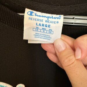 EUC - Champion Sweatshirt Size L. Black with Fuzzy ish Blue writing
