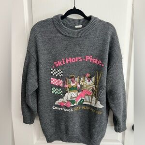apres ski, ski sweater, vintage French sweater, Courchevel sweater, oversized knit, graphic ski sweater, winter fashion, retro alpine style, cozy knit, made in France, vintage pullover, après ski look, unisex vintage, 80s ski sweater