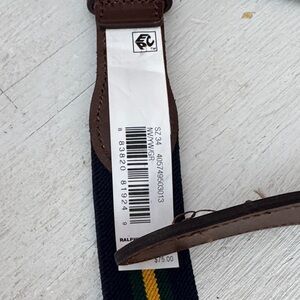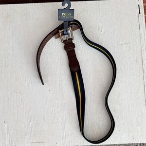 Polo by Ralph Lauren Navy, Yellow & Green Striped Belt with Cow Leather Belt