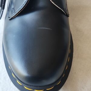 Timeless black Oxfords by Dr. Martens. Features iconic yellow stitching. Perfect for any occasion.