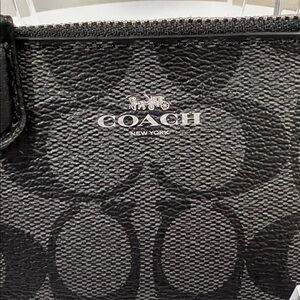 Fantastic mini skinny ID Keychain card case with signature Coach pattern. Features a secure zip closure section that can hold cards cash and coins. Like new condition.