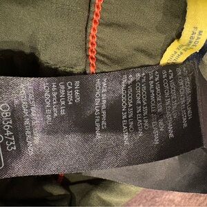 Chic olive trousers with red stitching. Ideal for versatile styling.