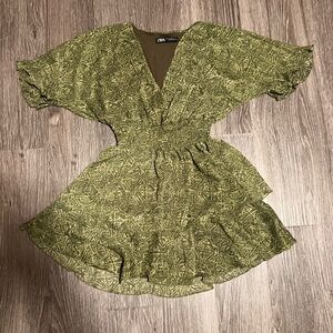 Zara Green and White Ruffled Wrap Mini Dress