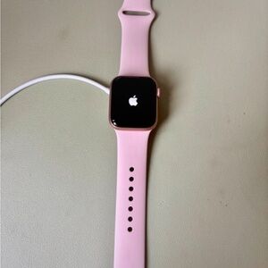 Elegant Apple smartwatch with a rose gold finish. Features a sleek design and advanced technology. Ideal for staying connected.