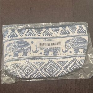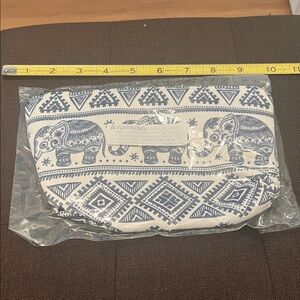 #1089+Blue and White Elephant Print Pouch