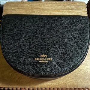 One pocket on outside and 2 openings on the inside. Inside is lined with brown suede.