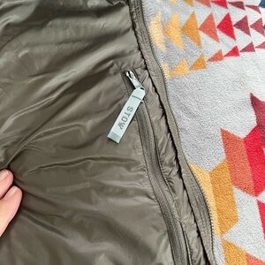 Lightweight puffer with hood. Perfect for cold weather. Stylish and functional.
