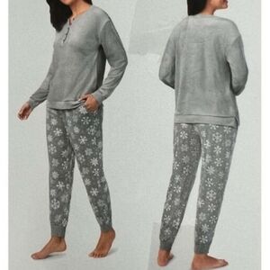 Nautica 2 Piece PJ Set Women's Large Gray White Print Fleece Loungewear Set NWT