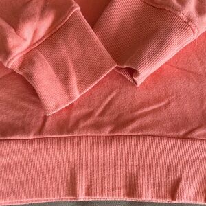 Casual sweatshirt with coral body and white sleeves. Ideal for everyday comfort.