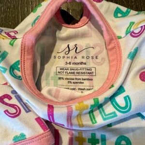 Adorable baby onesie with 'Little Sister' print. Features vibrant colors and a playful design.
