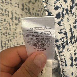 Chic short sleeve shirt with a navy and white pattern. Ideal for casual wear.