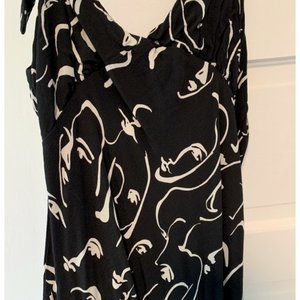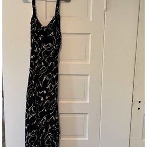 Elegant black midi dress with white abstract pattern. Sleeveless design. Perfect for any occasion. Aus size 14 US size 10.