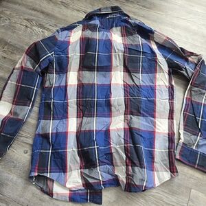 Express Navy and Red Checkered Men's Shirt