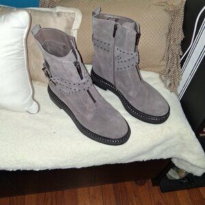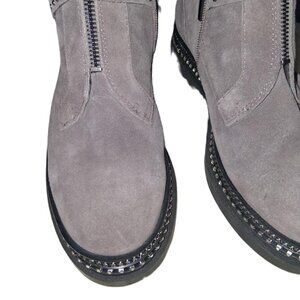 Vince Camuto Gray Suede Studded Moto Ankle Boots | Size 8