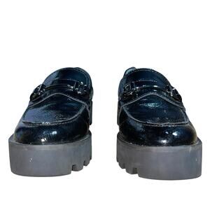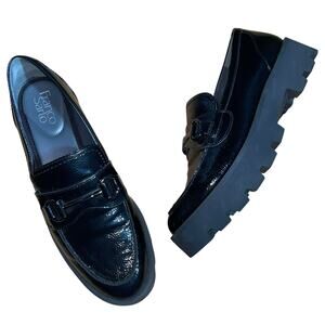 Step out in style with these Franco Sarto loafers! These chic Begamot shoes feature a glossy black patent finish and a minimalist design. The chunky platform adds a trendy touch, making them perfect for any fashion-forward individual. These loafers are in excellent condition and ready to elevate your wardrobe!