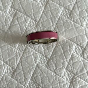 Hermès Clic H Bracelet in Blanc/ Rose Velours with palladium hardware. Comes with original box & dust sleeve. In good condition- minor wear on metallic finish. (PM size)