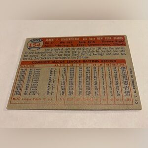 Red Schoendienst 1957 Topps Baseball Card Original Collectible Vintage New York Giants Ungraded Raw Original Card good-VG Condition card number 154 :posted 201