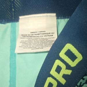 Tried to like them but just not for my body type. tried on not worn. Nike Pro bike shorts. Blue and green pattern. Comfortable fit. Ideal for workouts.