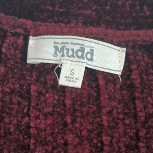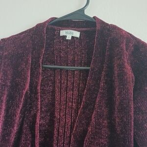 Mudd Y2K Burgundy Velvet Sweater Cardigan Women's Size Small Front Pockets Cozy