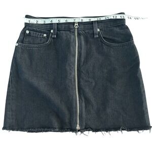 Keywords: Rag & Bone, Black Denim Skirt, Mini Skirt, Zip Front Skirt, Frayed Hem Skirt, Denim Mini, Black Skirt, Designer Skirt, Cotton Skirt, Size 24, Raw Hem, Edgy Skirt, Casual Skirt, Contemporary Fashion