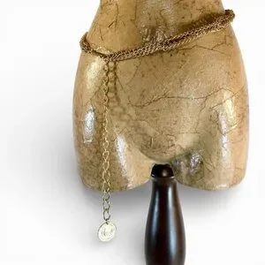 Elegant gold chain belt. Features a dangling coin charm, for the ultimate bohemian accessory. The double/twisted chain design is a unique, eye catching feature.