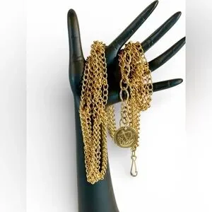 Vintage Chain Belt with coin, Triple Twisted-knotted Bohemian Hippie Gold tone
