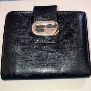 Gucci Vintage black leather interlocking G bifold wallet with silver har…