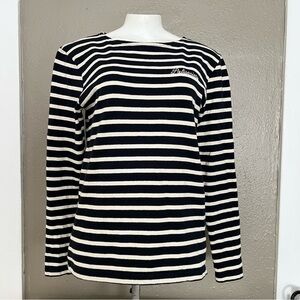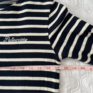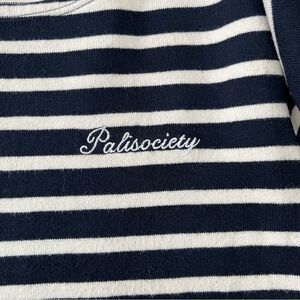 Classic Armor-Lux Breton striped long sleeve top in navy and white, crafted from 100% Fairtrade certified cotton. Soft, breathable, and timeless with embroidered “Palisociety” detail at chest. Size XS. Gently used and in excellent condition with no major flaws noted. A perfect everyday staple for layering, coastal style outfits, or chic minimal wardrobes.