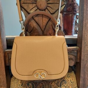 Genuine leather Valentina crossbody bag. Cream body with tan strap. Plenty of compartments to hold your stuff! This neutral handbag goes with everything!