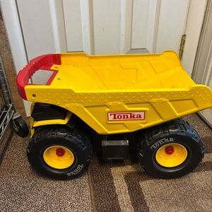 This is a nice size tote. It measures 14 inches wide 13 inches tall and is 4 inches deep. It has three inner slip pockets in a beautiful coordinated lining. The handle drop on this is 12 inches which is perfect for using as a shoulder bag or as a carry bag. This great tote is in like new condition and comes from a smoke/pet free home.