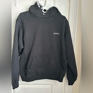 Madhappy classic sweatshirt. Size medium. Black color. Hood with embroidered white stitching on right side. Embroidered logo on left side of chest. Kangaroo pocket. Warm, fleece/sherpa type lining. Good preowned condition.