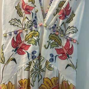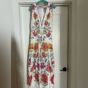Farm Rio Insects Floral V-Neck Sleeveless Linen Euroflax fMaxi Dress medium