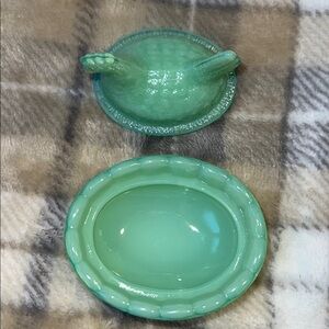 Jadeite Green Glass Nesting Hen Dish