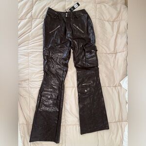 Fashion Nova Brown Leather Wide Leg Pants