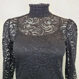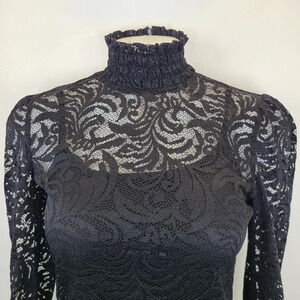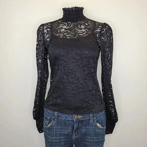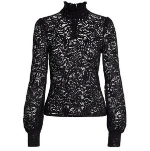 L'Agence Samara Black Sheer Lace Long Sleeve Bell Sleeve Turtleneck Top XS