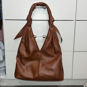 Sondra Roberts Squared Faux Pebbled Leather Knotted Handle Tote Bag