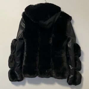 Luxurious Black Faux Fur Faux Leather Women's Jacket