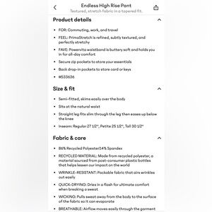 Sleek black ankle pants by Athleta. Perfect for versatile styling and comfort. Ideal for casual or professional wear. Excellent used condition. Size 14. See last slide for details from website.