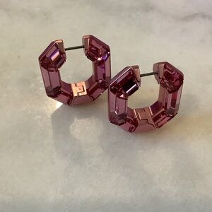 Glamorous Swarovski octagon shape pink crystal hoops. Perfect for adding sparkle.