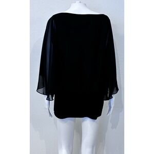 Coco Bianco Black Whimsigoth Fairy Sheer Flutter Sleeve Top Size M Office. Please see pictures for measurements.