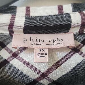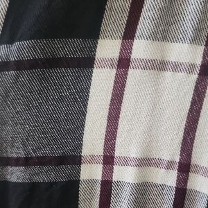 Chic black, dark burgandy and cream plaid shirt with a classic design. Features a comfortable fit.