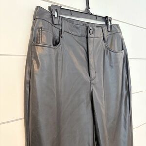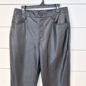 Nine West Faux Leather Straight Pants Black Minimal Chic Office Night Out 12