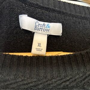 Stylish black sweater featuring a textured pattern and button detail on the shoulder. Perfect for a cozy and chic look. Croft and Barrow sweater, women’s size extra large.