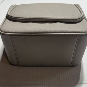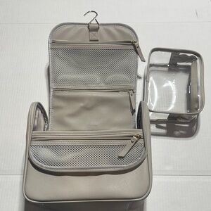 Stackers toiletry tan bag w multiple zippers compartments removable makeup bag