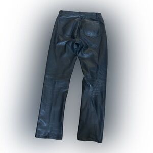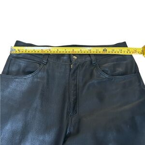 black leather pants, thick leather, lined leather pants, high rise pants, straight leg leather, genuine leather, minimal leather pants, 90s leather pants, belt loop pants, leather trousers, size small pants, metal , cowboy, cowgilr moto biker. Sexy pants, vintage .