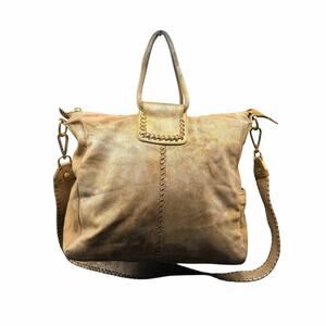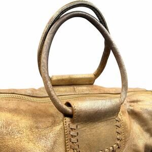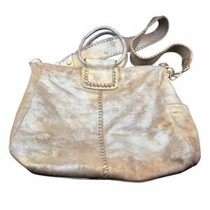 HOBO Sheila Distressed Metallic Gold Leather Satchel Crossbody Bag